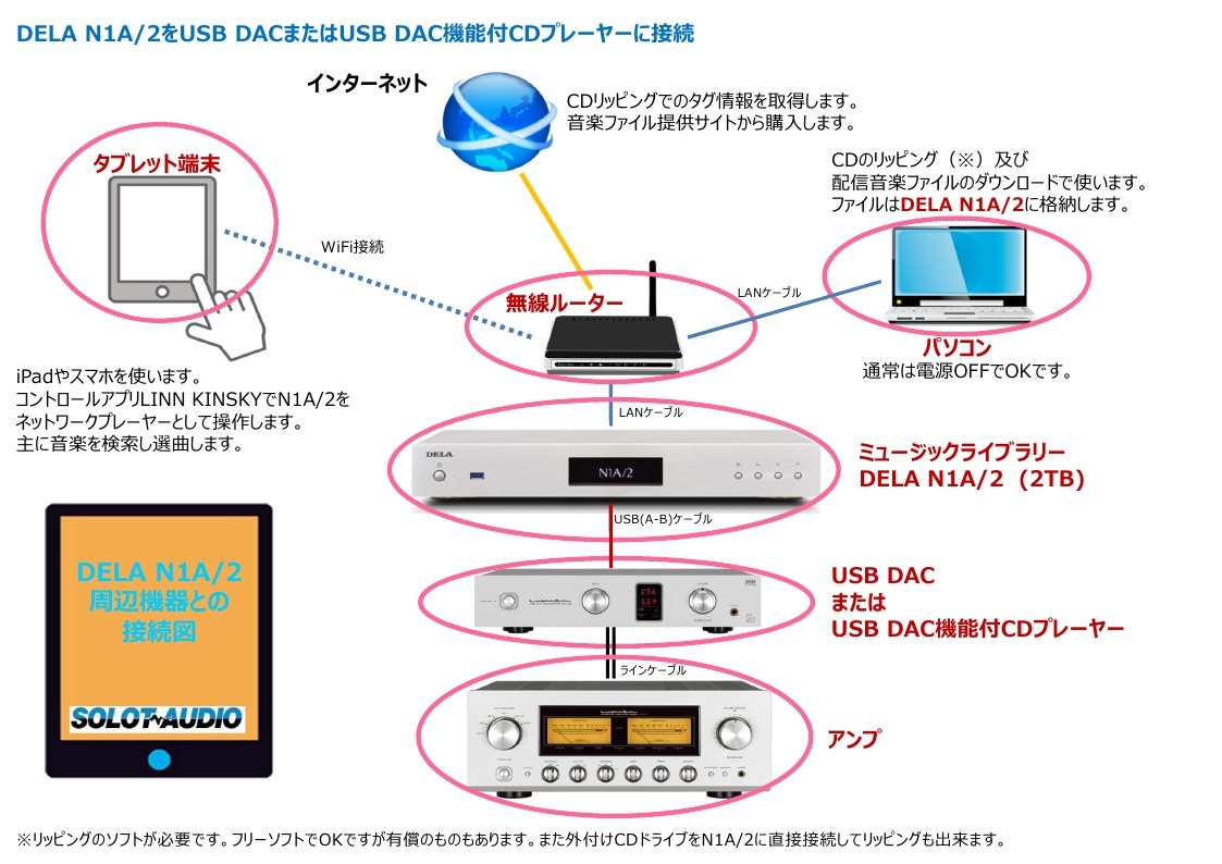 ■USB DACまたはUSB DAC機能付CDプレーヤー。・・・DELAのWEBサイトに動作確認済み機器をご覧下さい。